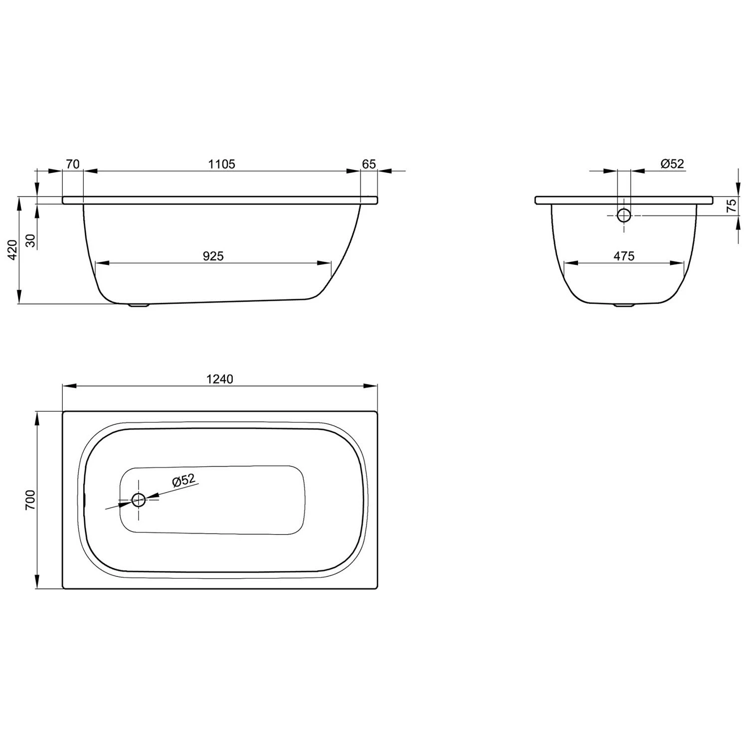 Bette Labette Kleinwanne 124 x 70 x 42 cm mit Griffbohrung