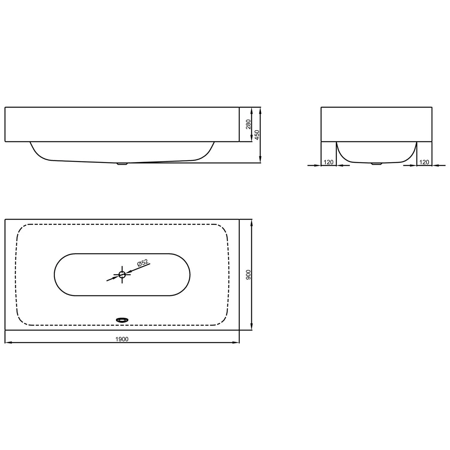 - Ablaufloch Ø 5,2 cm