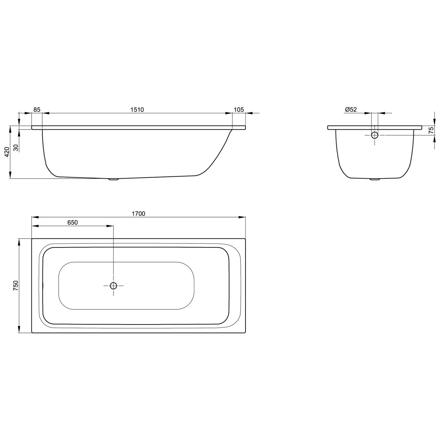 Bette Select Badewanne 170 x 75 x 42 cm Ablauf mittig
