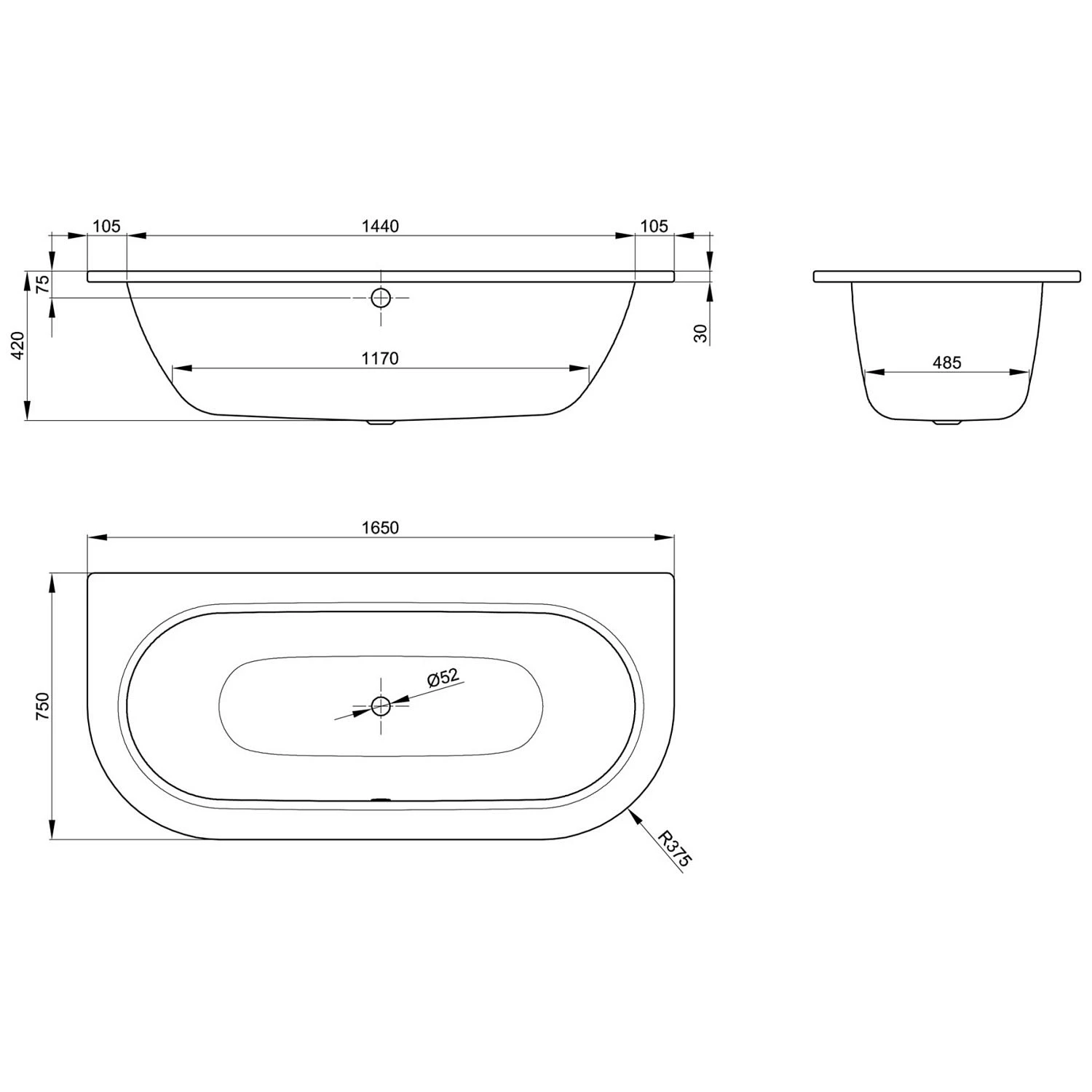 - Maße: 165 x 75 x 42 cm für ca. 116 Liter Wasser bei einem Badenden