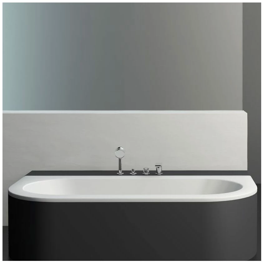 - Elegante Badewanne mit klassisch ovalem Innenraum und Mittelablauf, gerade verlaufender Seite zur Installation