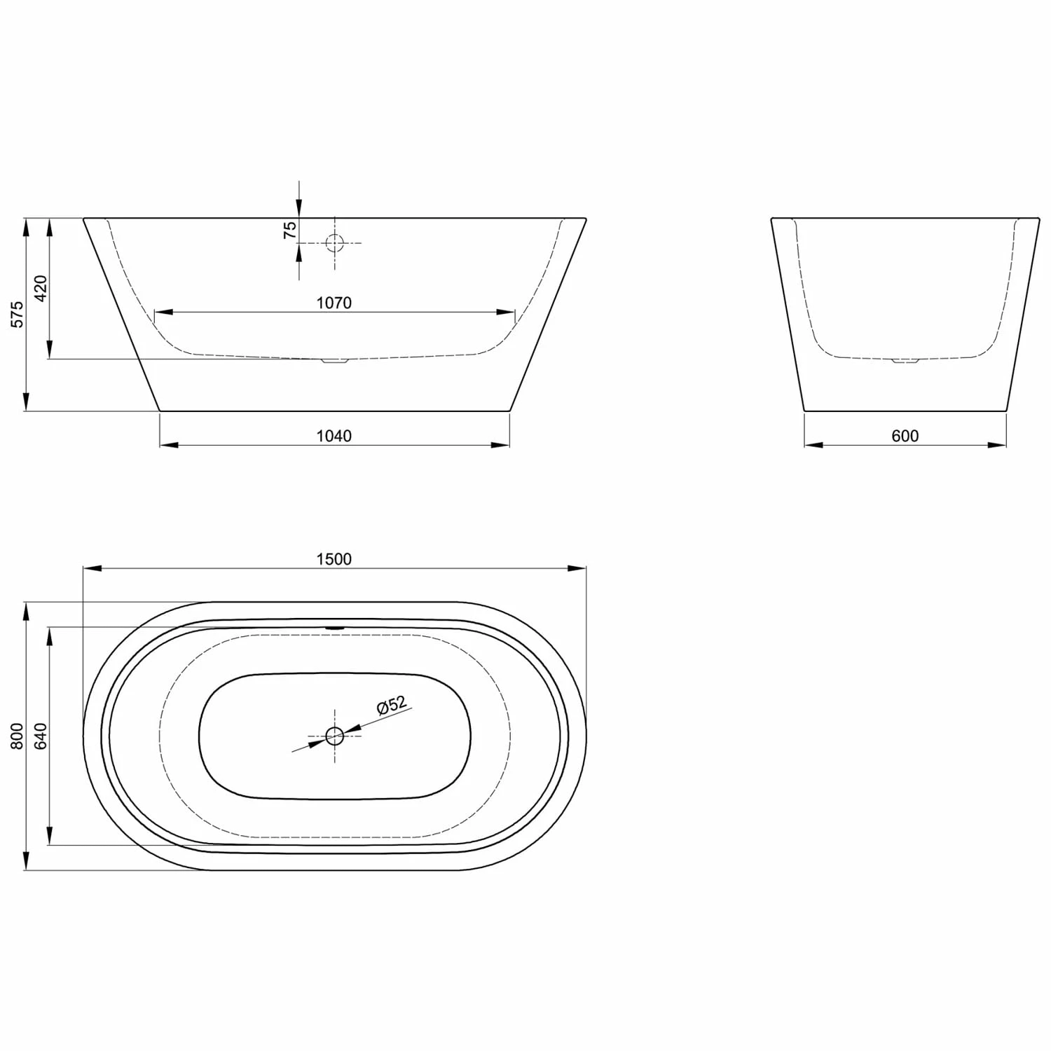 - freistehende Ovalbadewanne mit fugenloser und fest angebundener Schürze