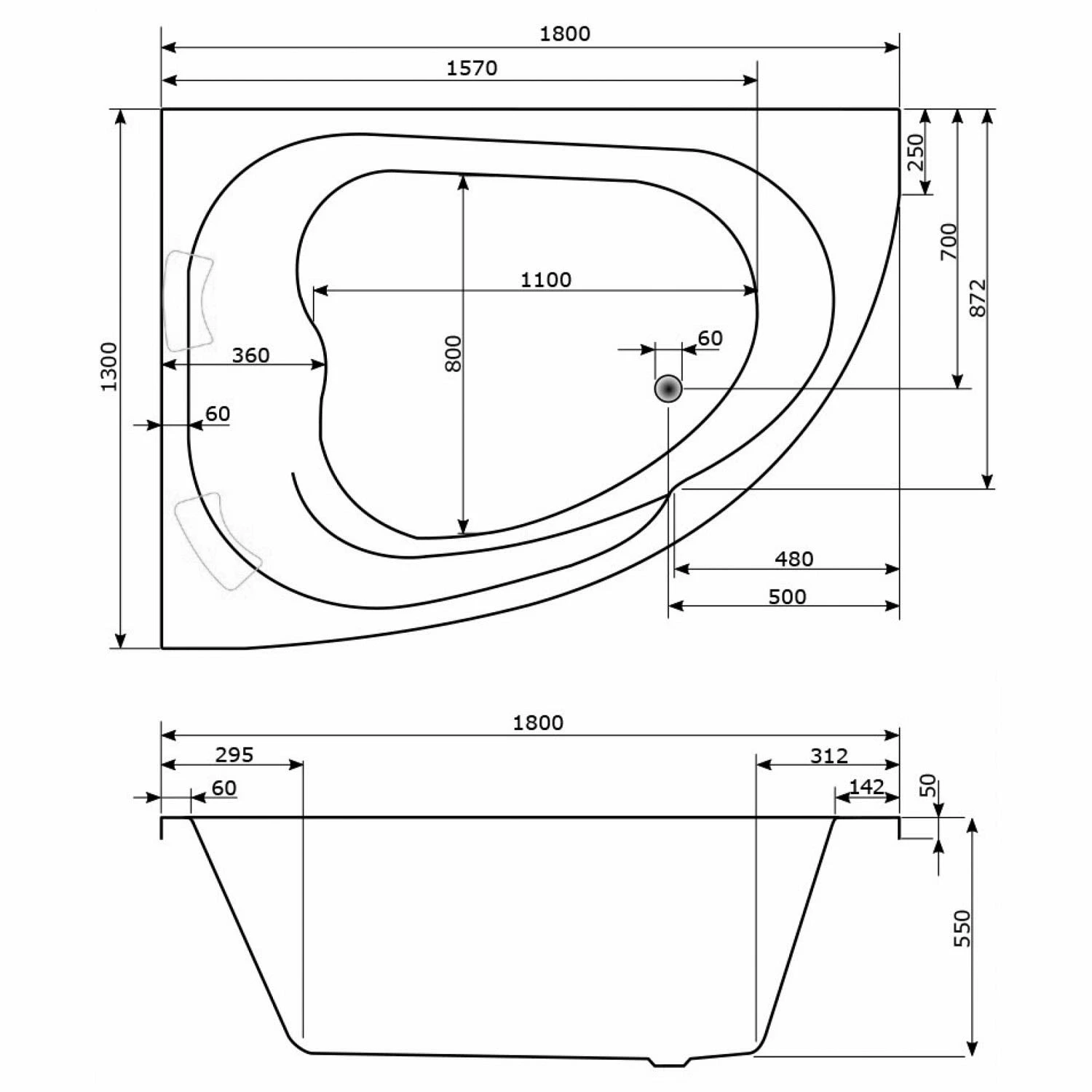 Caribia Delta XL Badewanne 180 x 130 cm ohne Schürze, für Ecke links