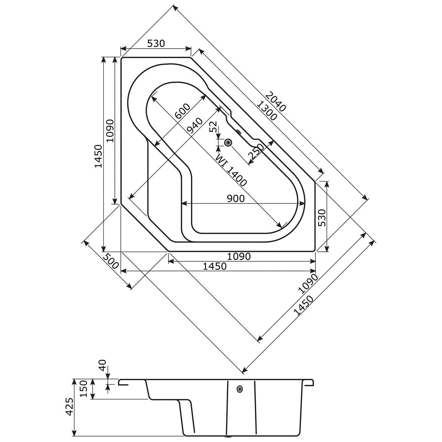 - der Whirlpool wird nur dann mit vorgebohrten Löchern geliefert, wenn die Caribia 5-Loch-Armatur (siehe Zubehör) mitbestellt wird