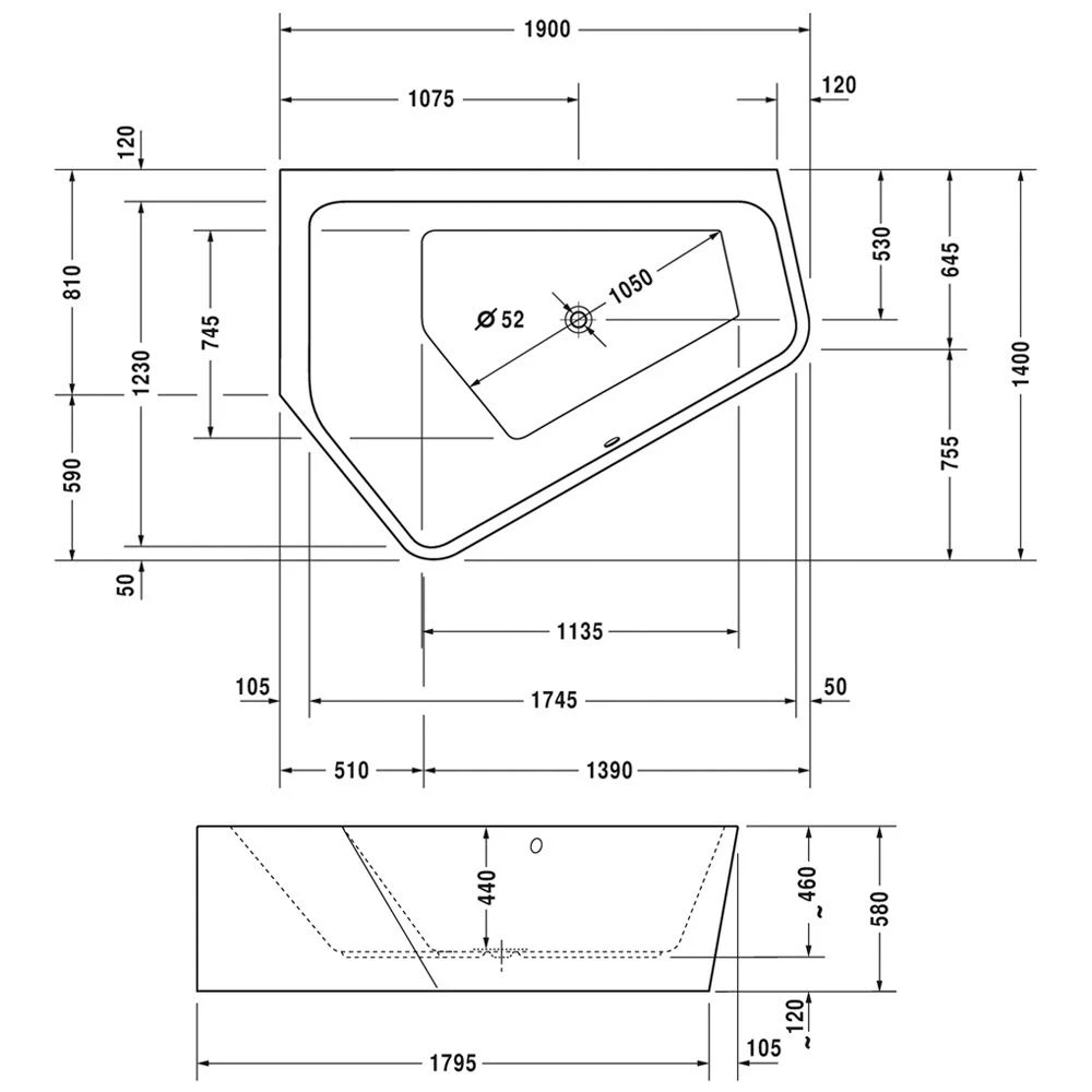 Duravit Paiova 5-Eck Badewanne links, mit Verkleidung 190 x 140 cm