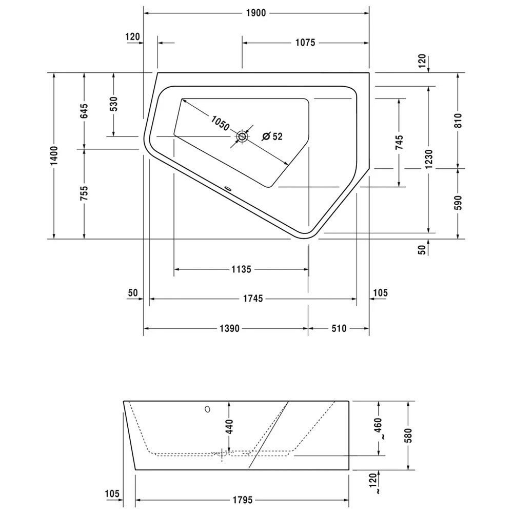Duravit Paiova 5-Eck Badewanne rechts, mit Verkleidung 190 x 140 cm