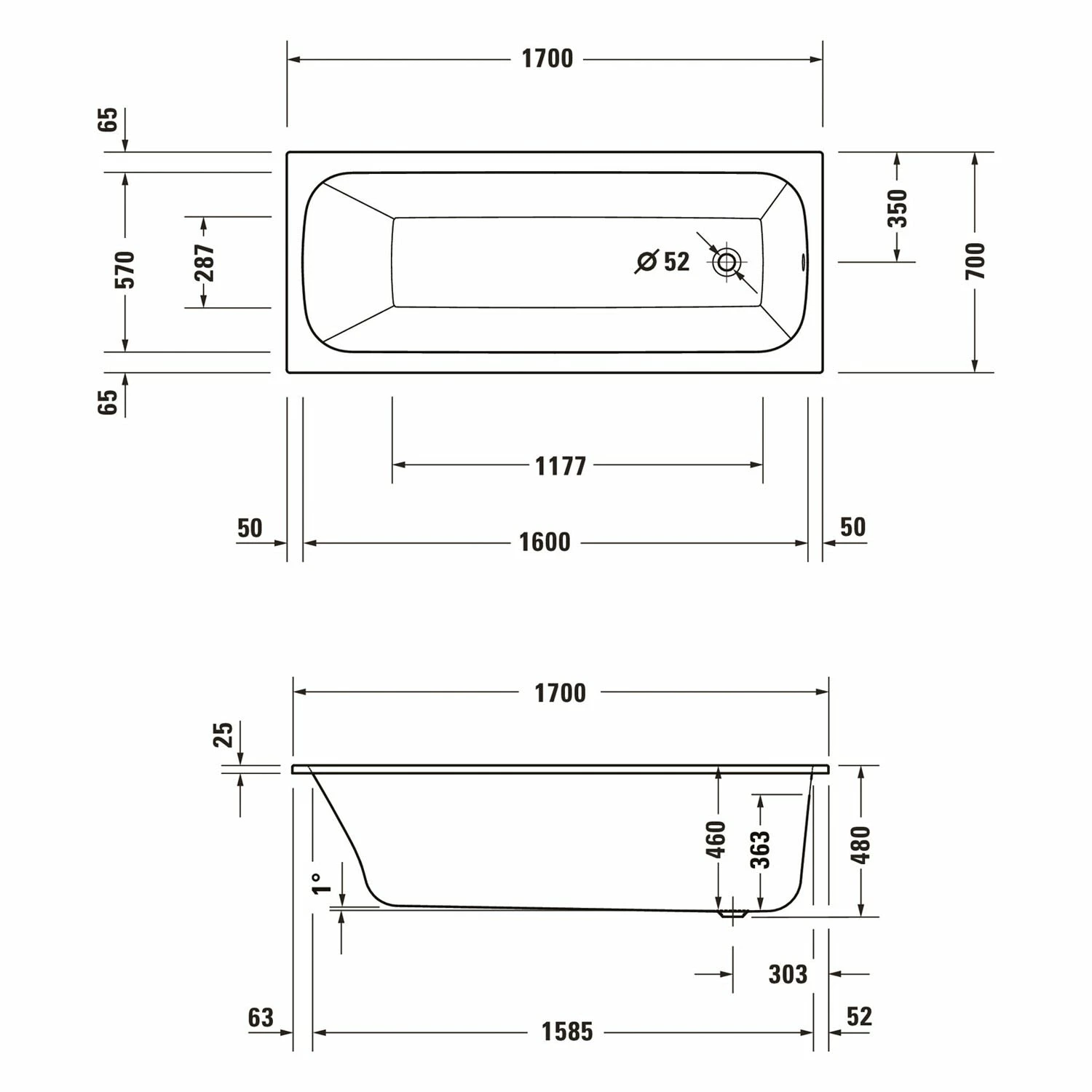 Duravit Qatego Rechteck-Badewanne 170 x 70 cm, Einbauversion