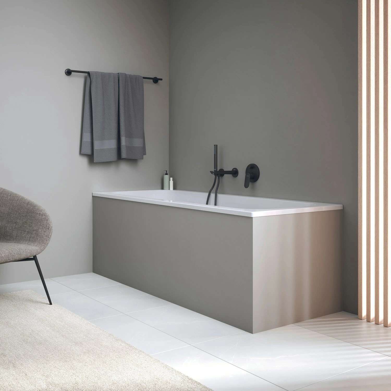 Die Montage eines Duravit Wannengriffs für einen sicheren Ein- und Ausstieg ist möglich (Montage nur ab Werk möglich).