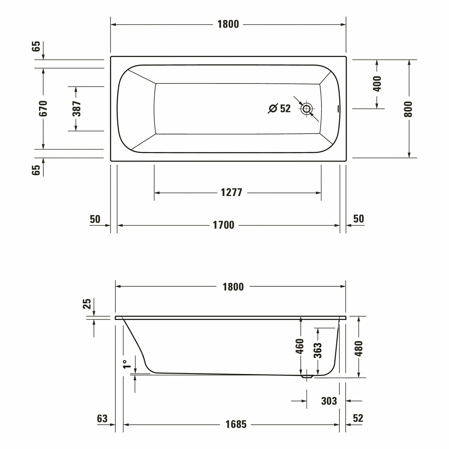 - Ablaufposition am Fußende mit Ø 5,2 cm