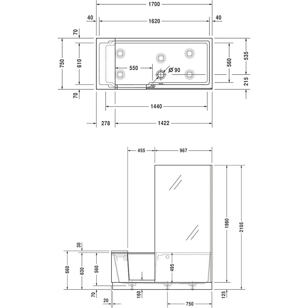 Duravit Shower & Bath Dusch-Badewanne Ecke rechts 170 x 75 cm