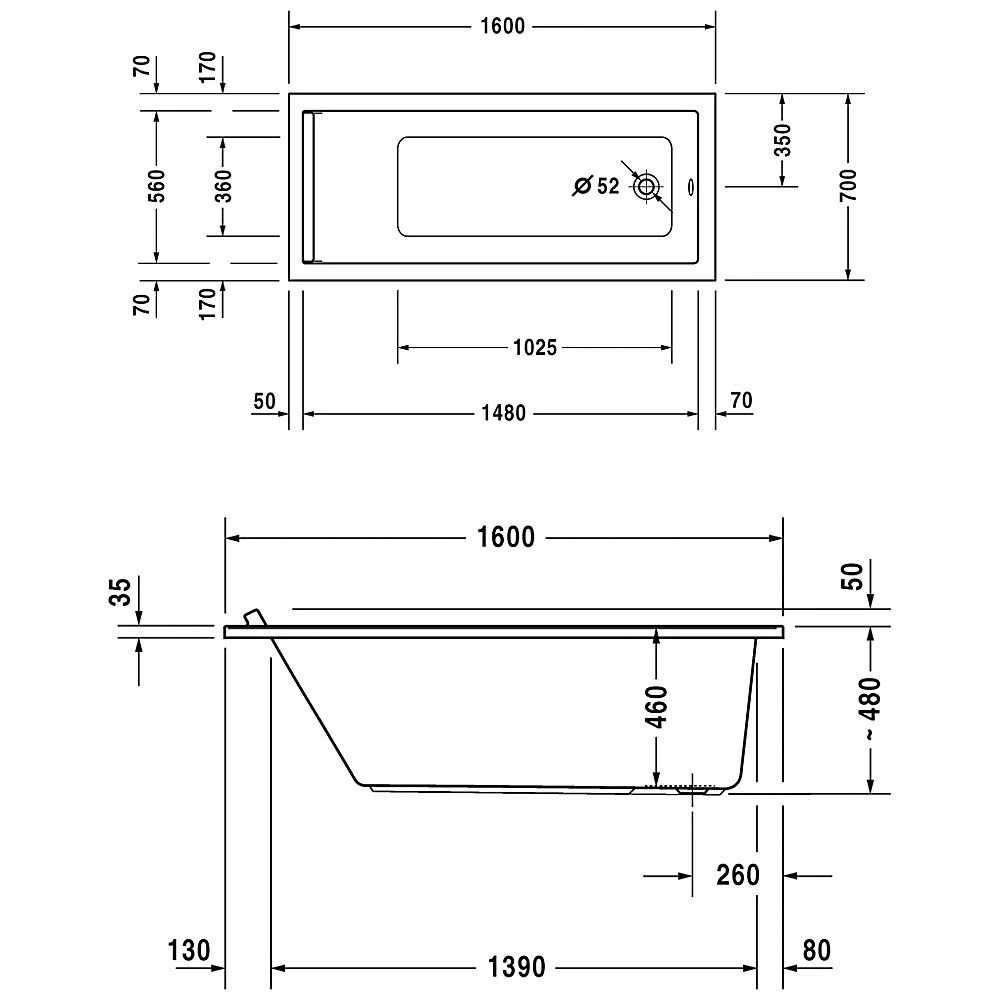 Duravit Starck Badewanne Rechteck 160 x 70 cm