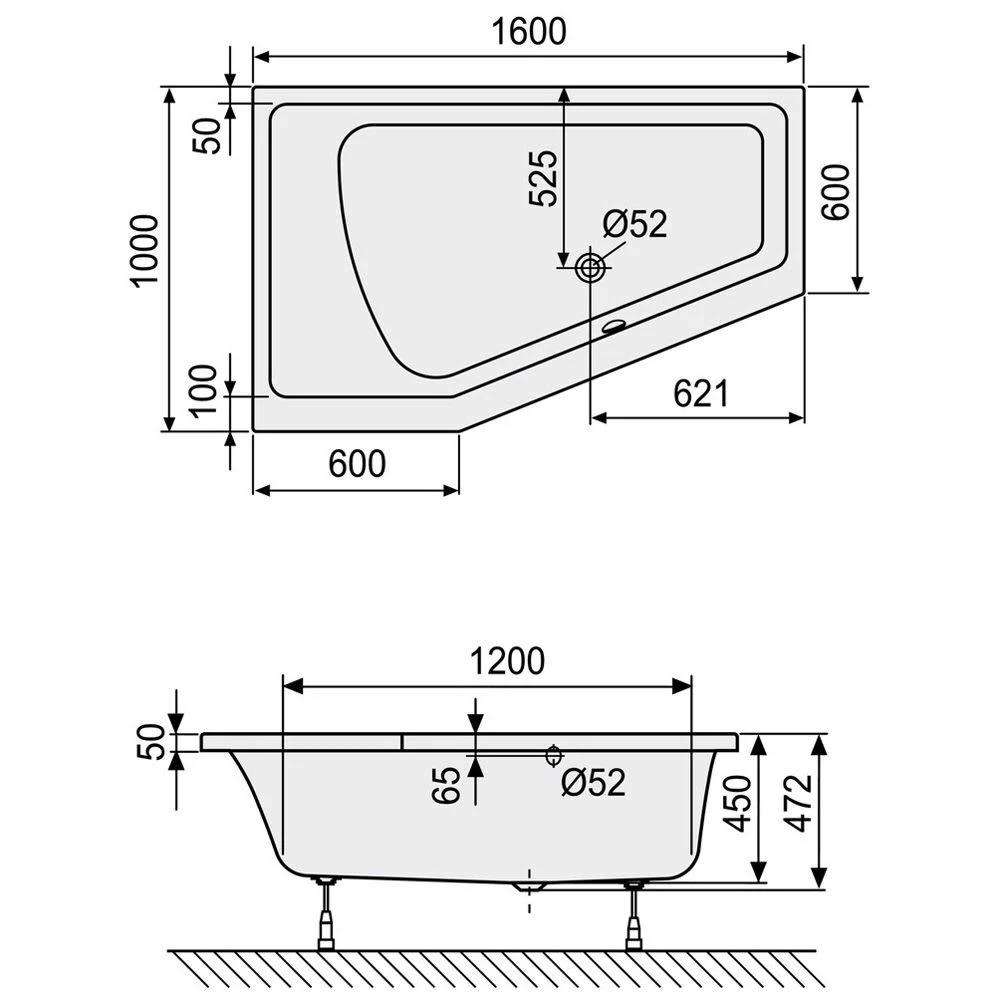 - asymmetrisch, für Einbau Ecke links