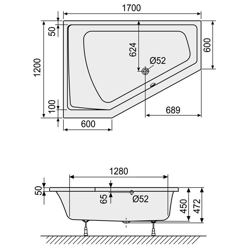 DUSCHOLUX Prime-Line 253 Raumsparwanne asymmetrisch Einbau Ecke links
