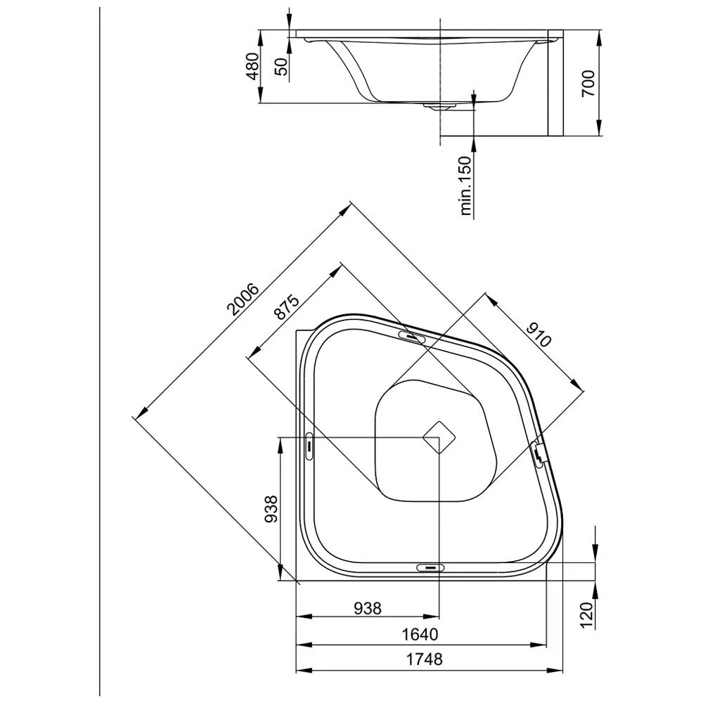 - Einbauhöhe mit Wannenfuß: ca. 66 – 70 cm