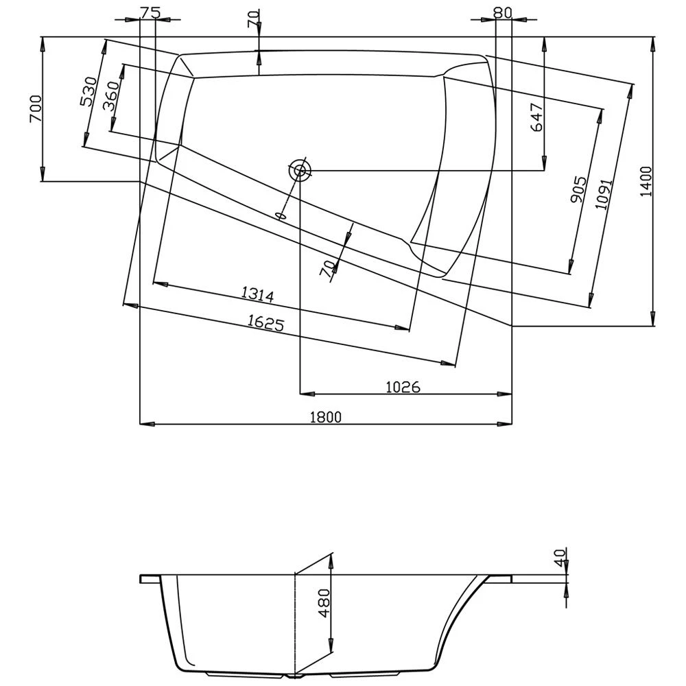 Hoesch Largo Eck-Badewanne 180 x 140 cm rechte Ausführung