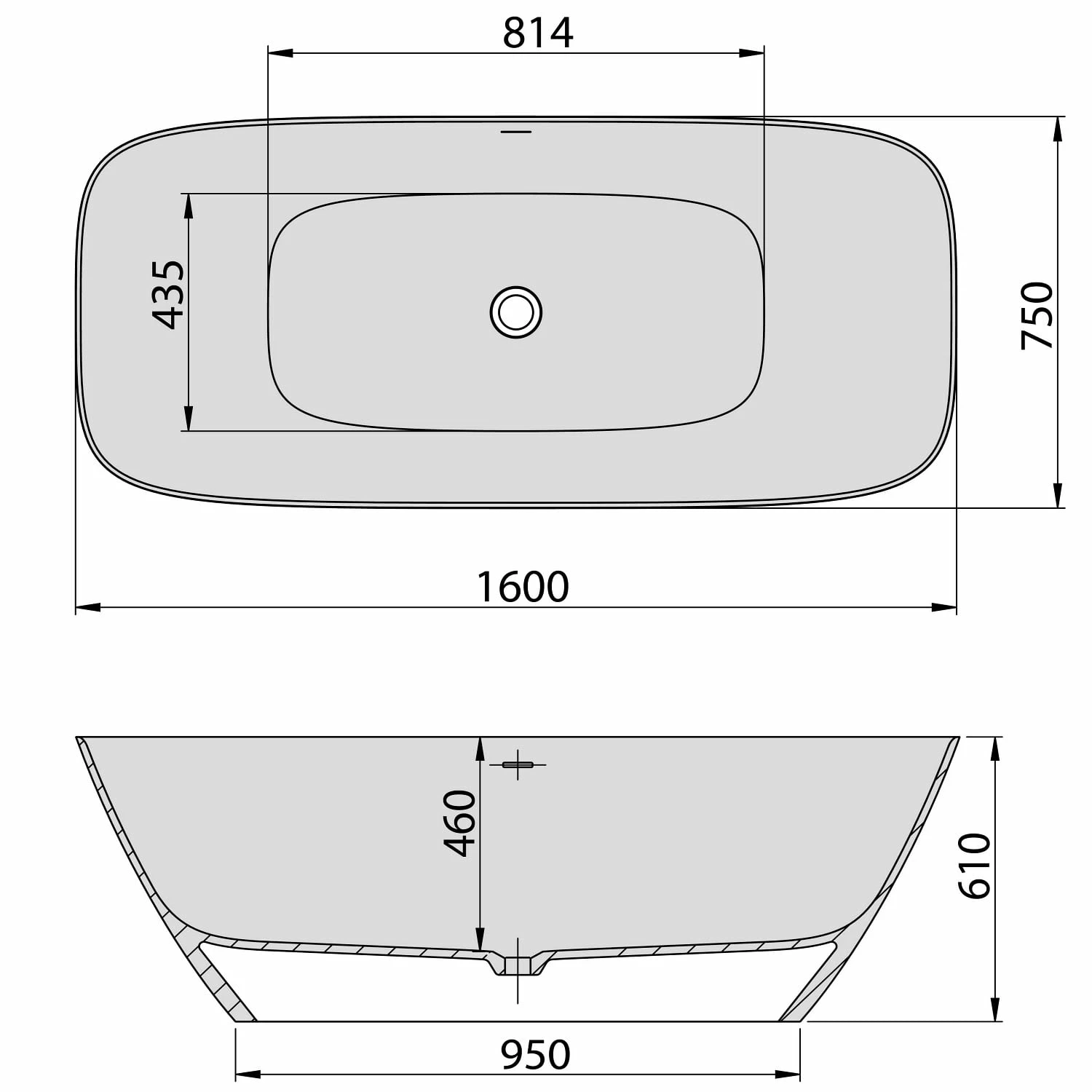 Hoesch Lasenia Oval-Badewanne 160 x 75 cm freistehend