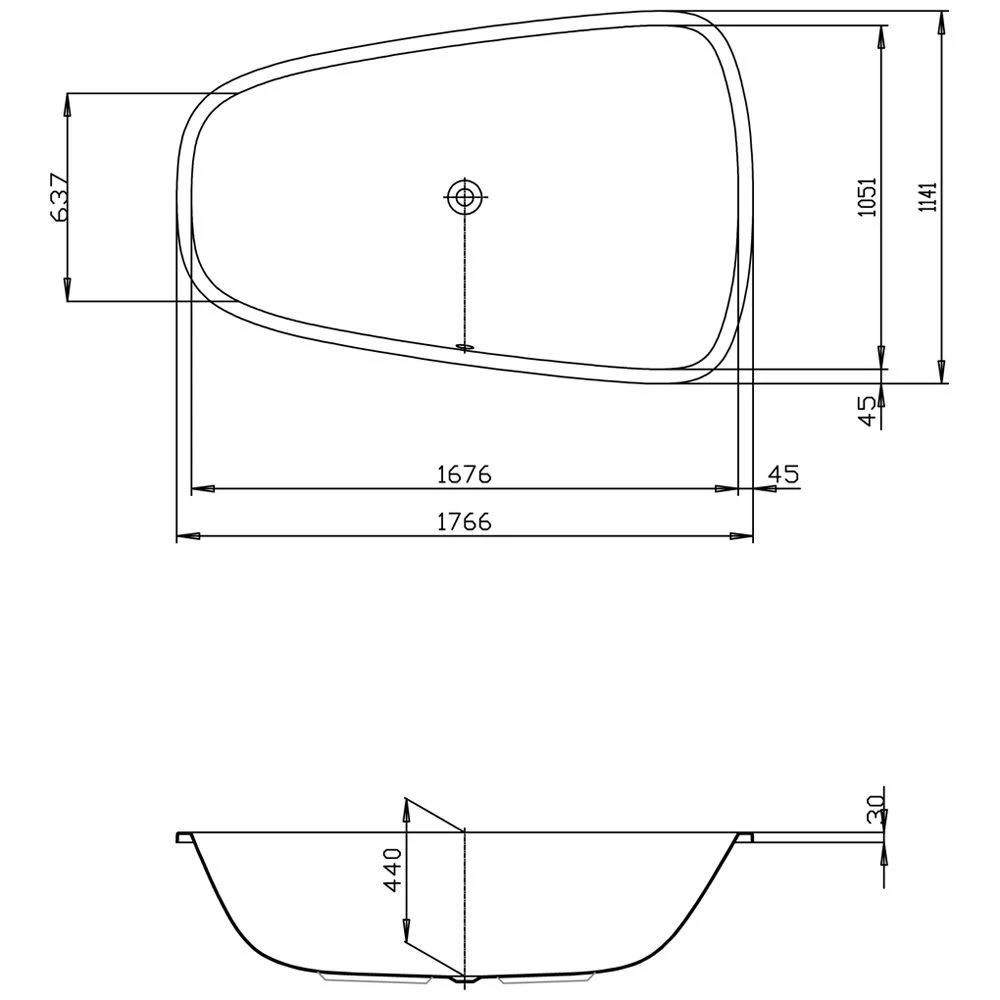 Hoesch SingleBath Duo Einbaubadewanne 176 x 114 cm, Überlauf links