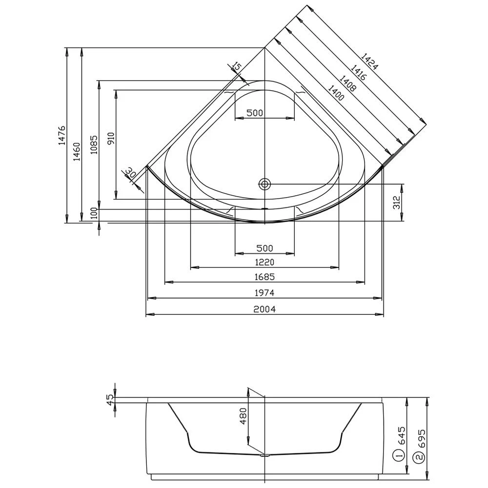 Hoesch Spectra Eck-Badewanne 140 x 140 cm mit loser Schürze