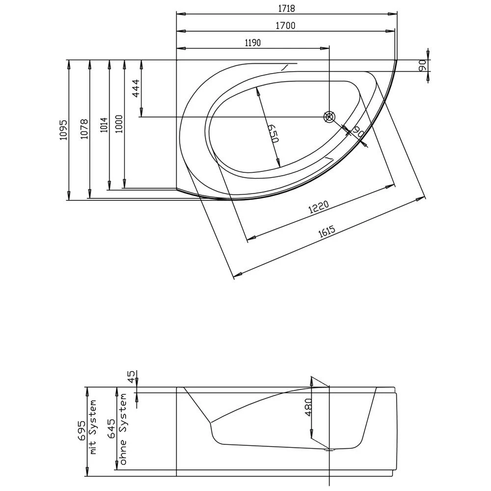Bitte Hoesch Combi Spezial-Ab- und Überlaufarmatur oder Hoesch Combi-Plus Wanneneinlauf mit Spezial-Ab- und Überlaufarmatur separat mitbestellen!