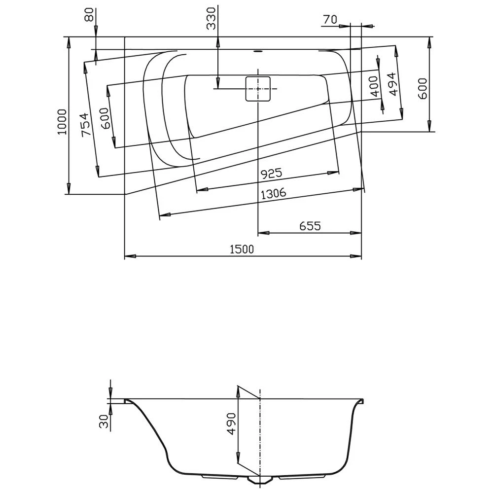 Hoesch Thasos Eckbadewanne 150 x 100 cm linke Ausführung