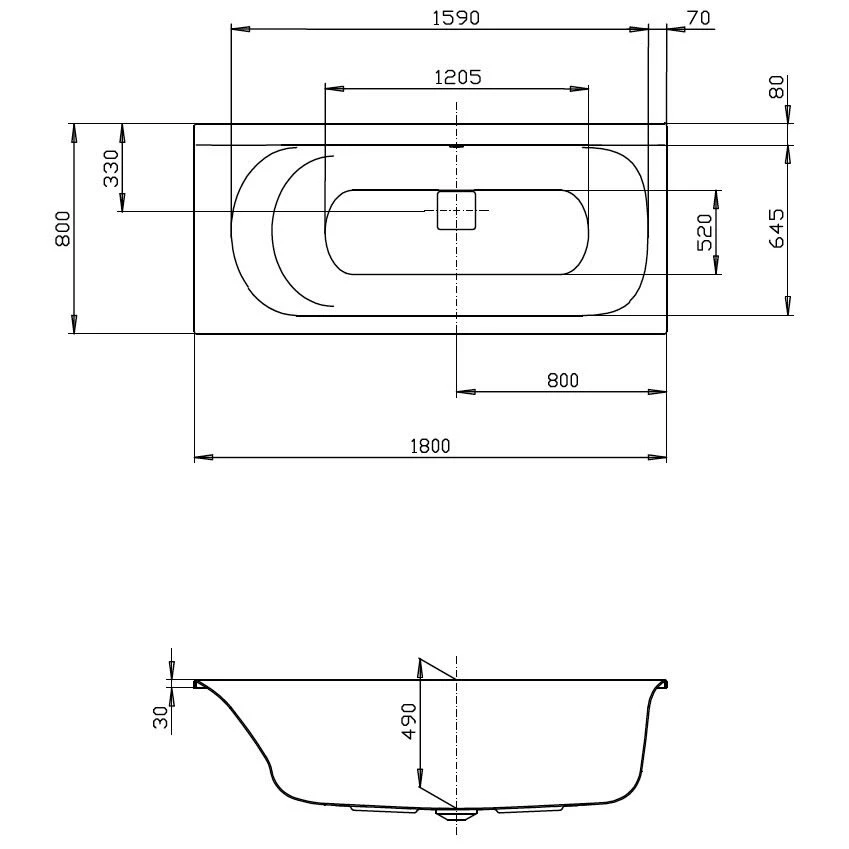 Hoesch Thasos Rechteckbadewanne 180 x 80 cm