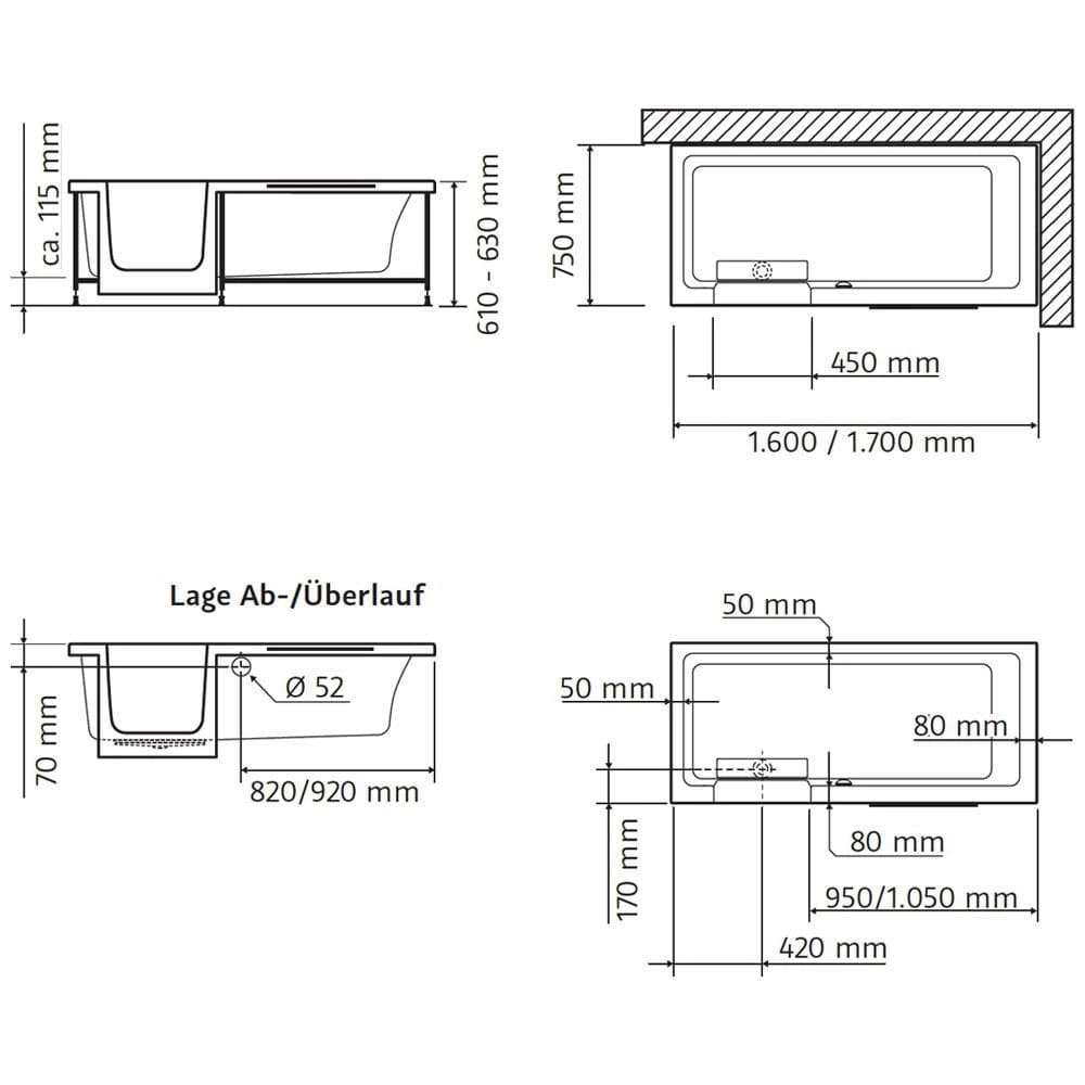 HSK Dusch-Badewanne Dobla 160 cm Einstieg links mit Antislip
