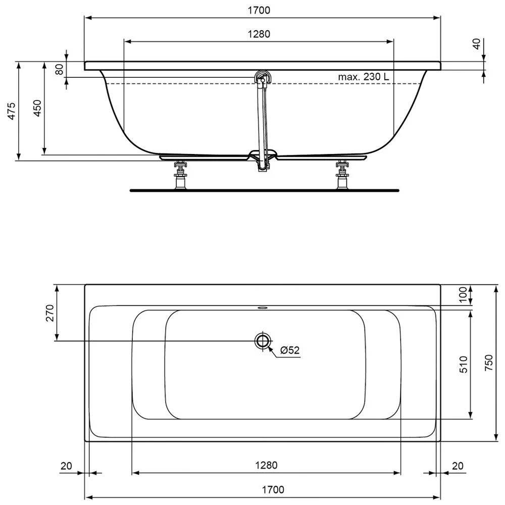 Ideal Standard Connect Air Duo-Badewanne 170 x 75 cm