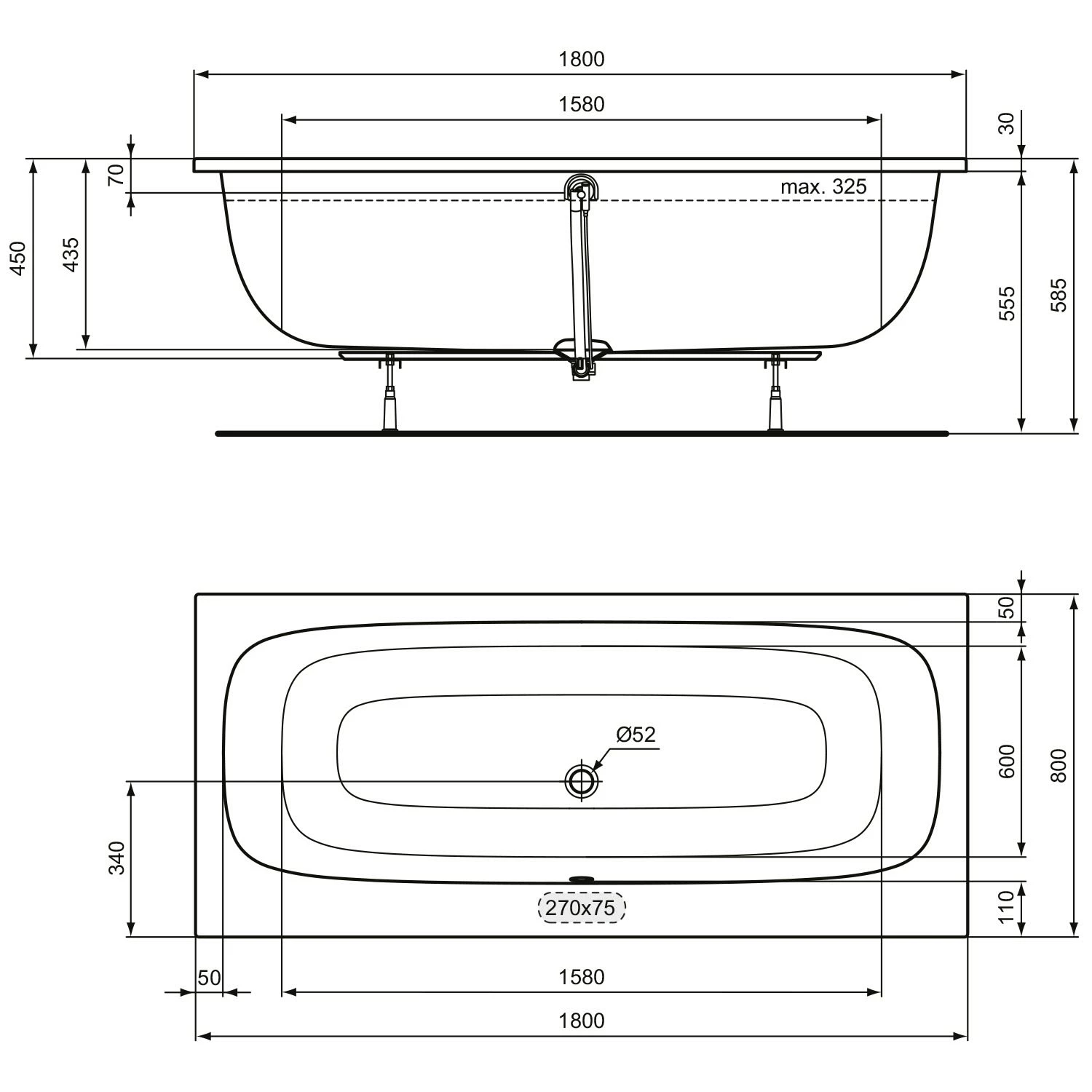 Ideal Standard i.life Duo-Badewanne 180 x 80 cm
