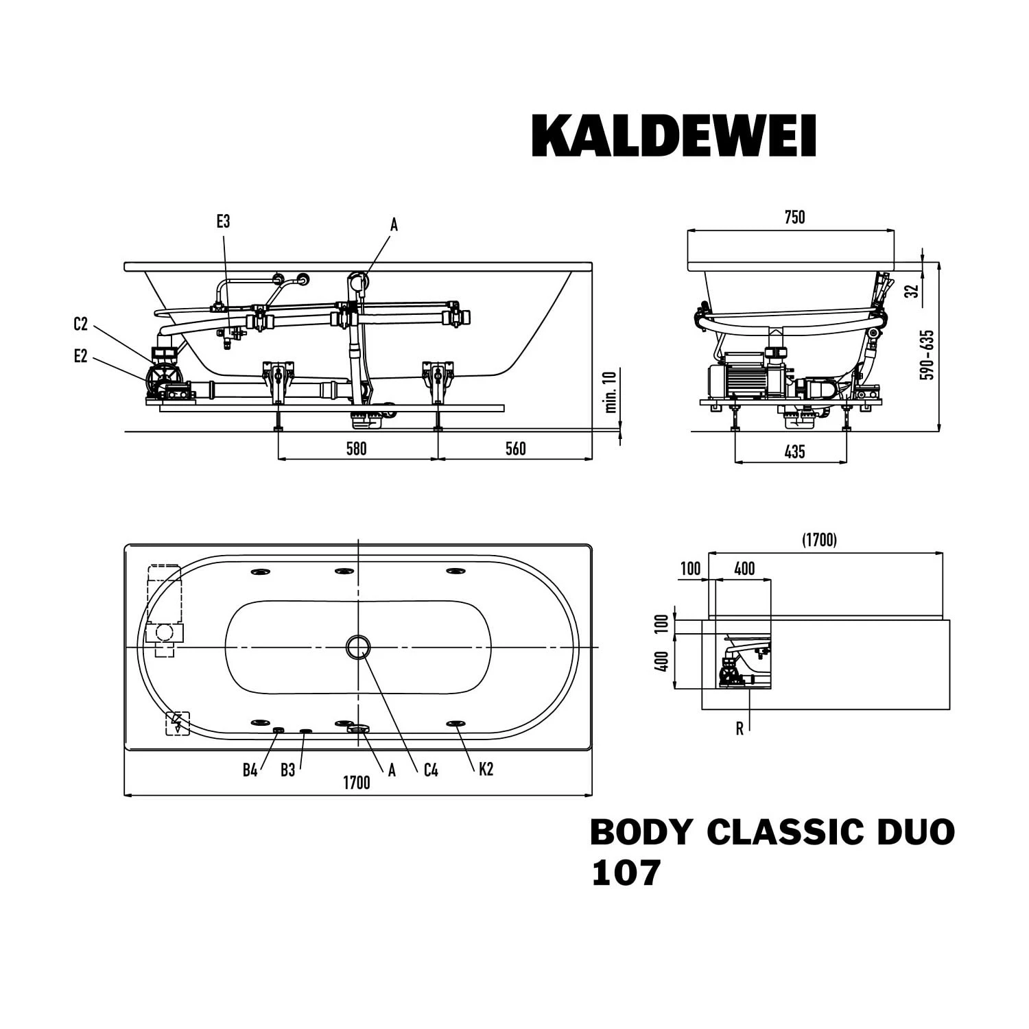 Kaldewei Classic Duo 107 Whirlpool mit BODY Whirlsystem, Ab- und Überlauf mit Wassereinlauf, Perl-Effekt