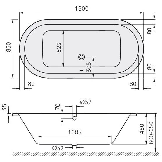 Kronenbach Tube Duo-Badewanne 180 x 85 cm