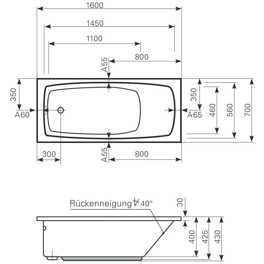 Mauersberger Badewanne Elisal 160 x 70 cm