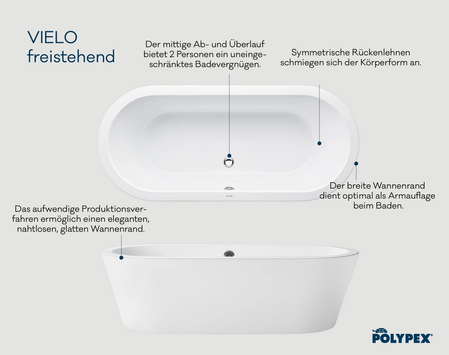 - Die Wanne wird werksseitig vormontiert und wird komplett mit Ab- und Überlaufgarnitur inkl. Verbindungsrohr ausgeliefert.
