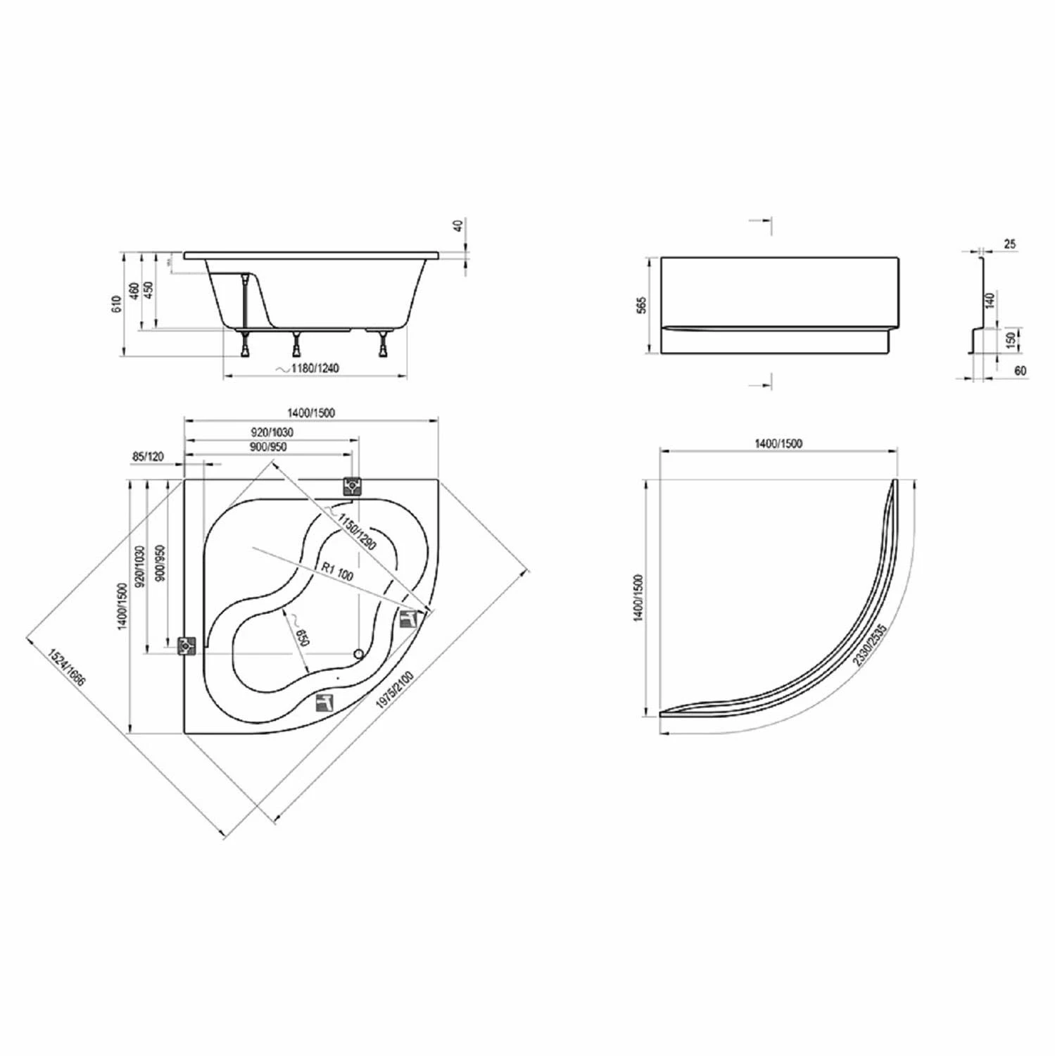 - optionale Accessoires: Frontpaneel, Badewannenablaufgarnitur