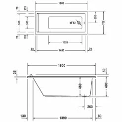 Duravit Starck Rechteck Whirlwanne 160 X 70 Cm Mit Jet System, Einer Rückenschräge