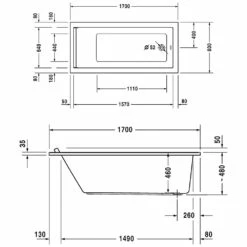 Duravit Starck Rechteck Whirlwanne 170 X 75 Cm Mit Combi-System P, Einer Rückenschräge