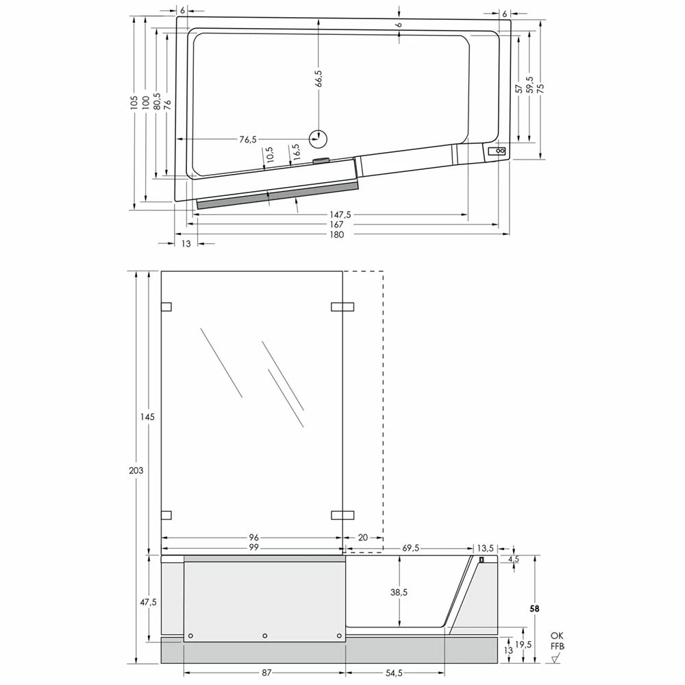 Repabad Easy-in Badewanne 180 Türe rechts Nischeneinbau