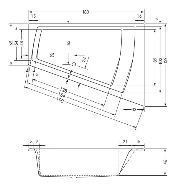| Abmessungen | L: 180 B: 130/65 H: 46 cm |