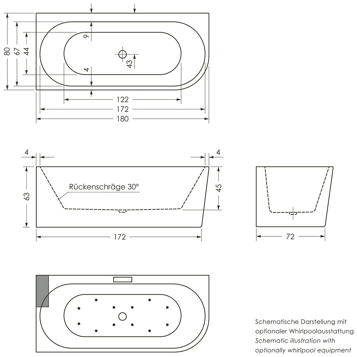Repabad Livorno 180 oval F rechts Eck-Badewanne