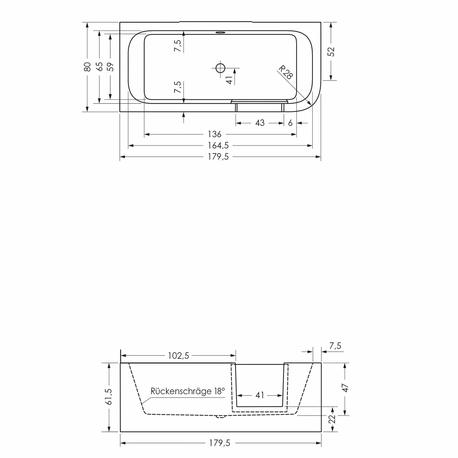 Repabad Livorno Easy Duschbadewanne 180 F, Einstieg rechts