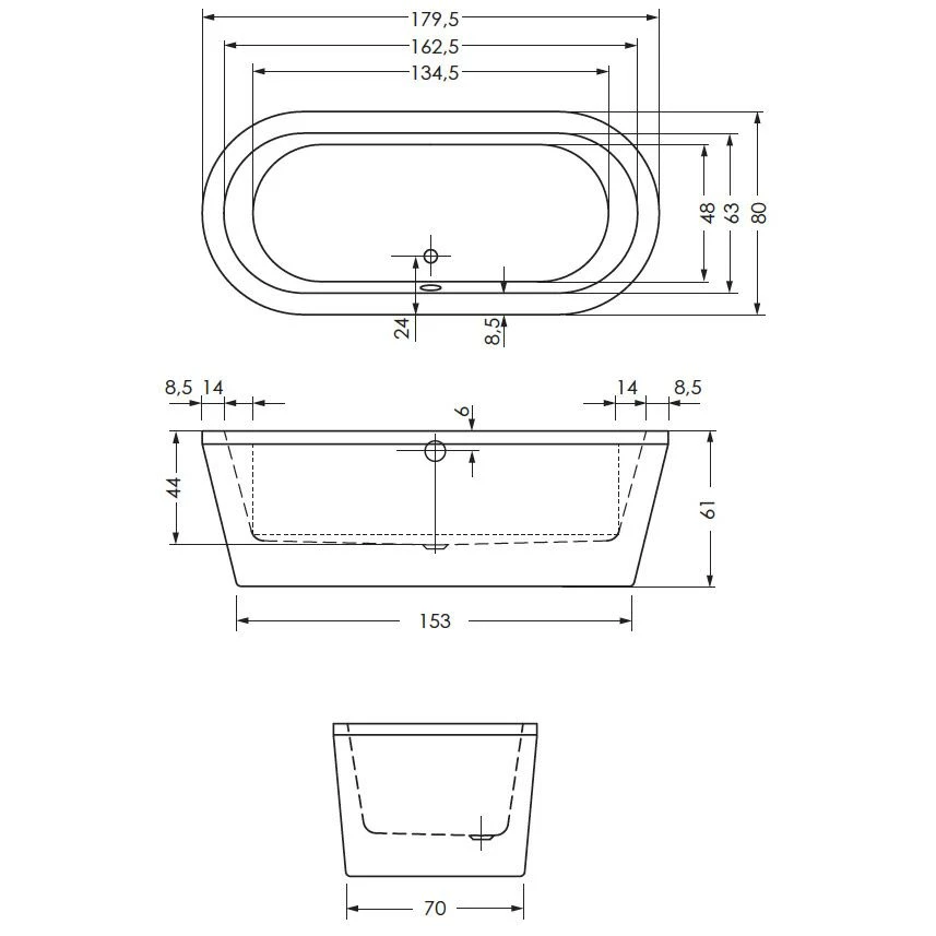 Repabad Livorno Oval F Badewanne freistehend 180 x 80 cm