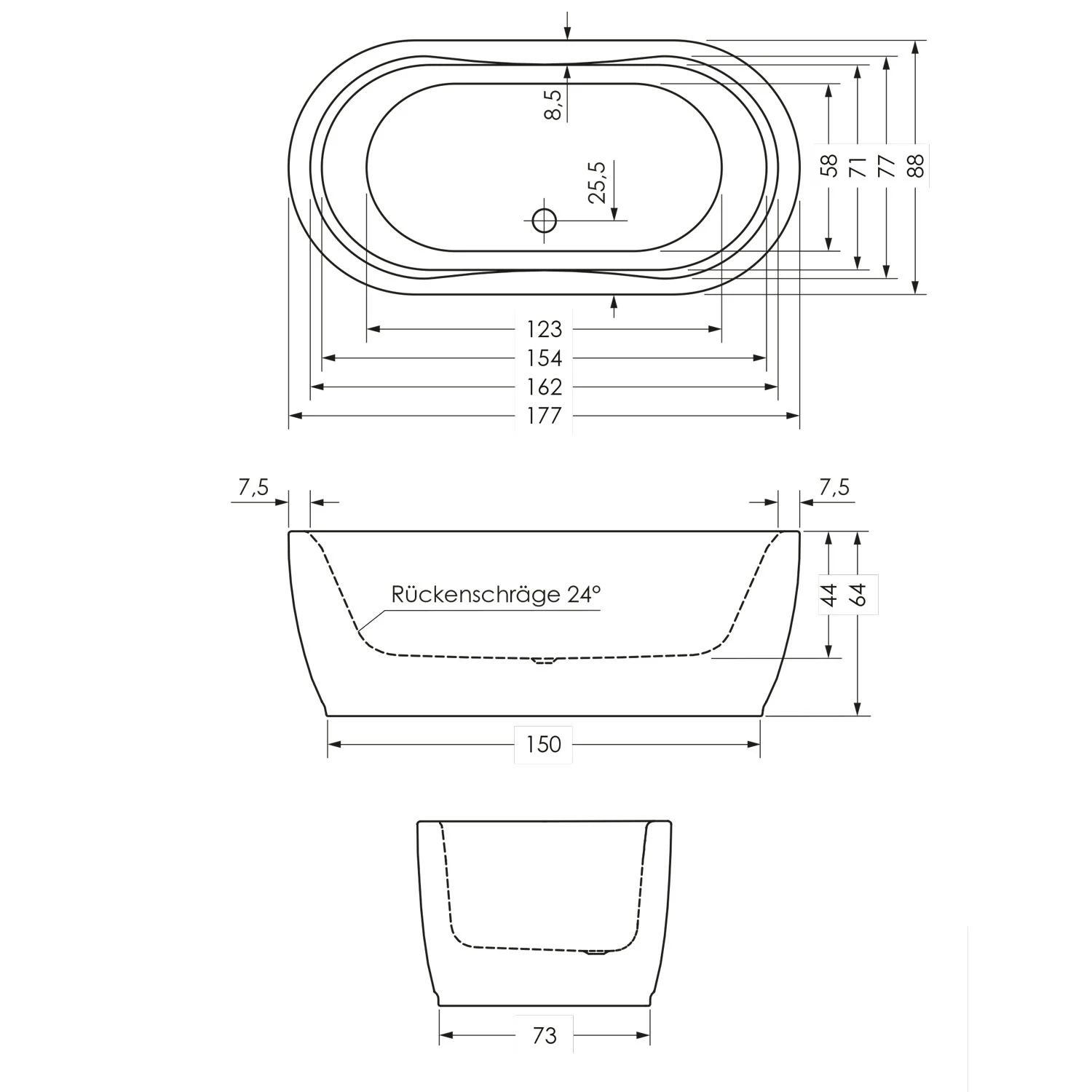 Repabad Pluto freistehende Ovalbadewanne 180 x 90 cm
