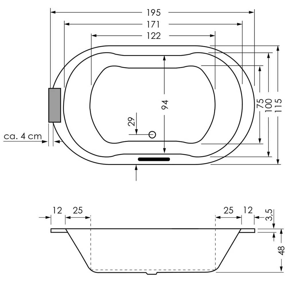 Oval-Badewannen