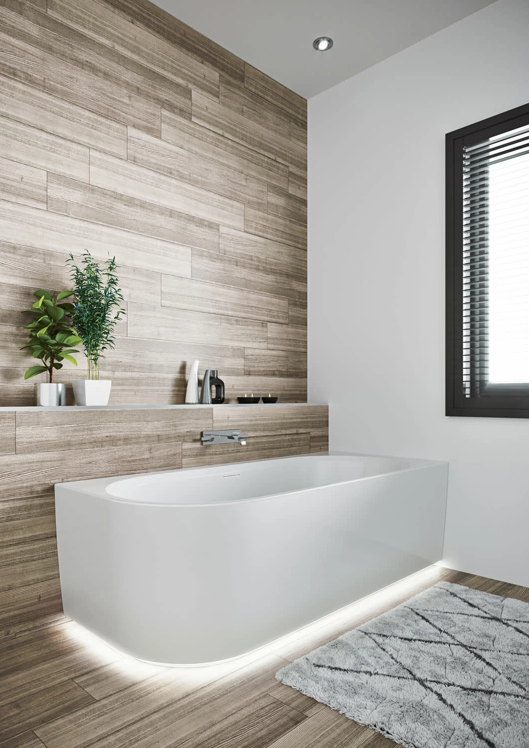 - wandstehende Acrylwanne (Rückseite und eine kurze Seite an der Wand)