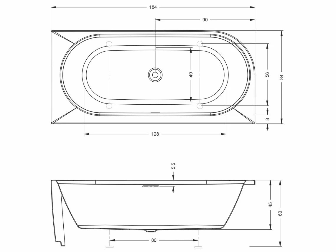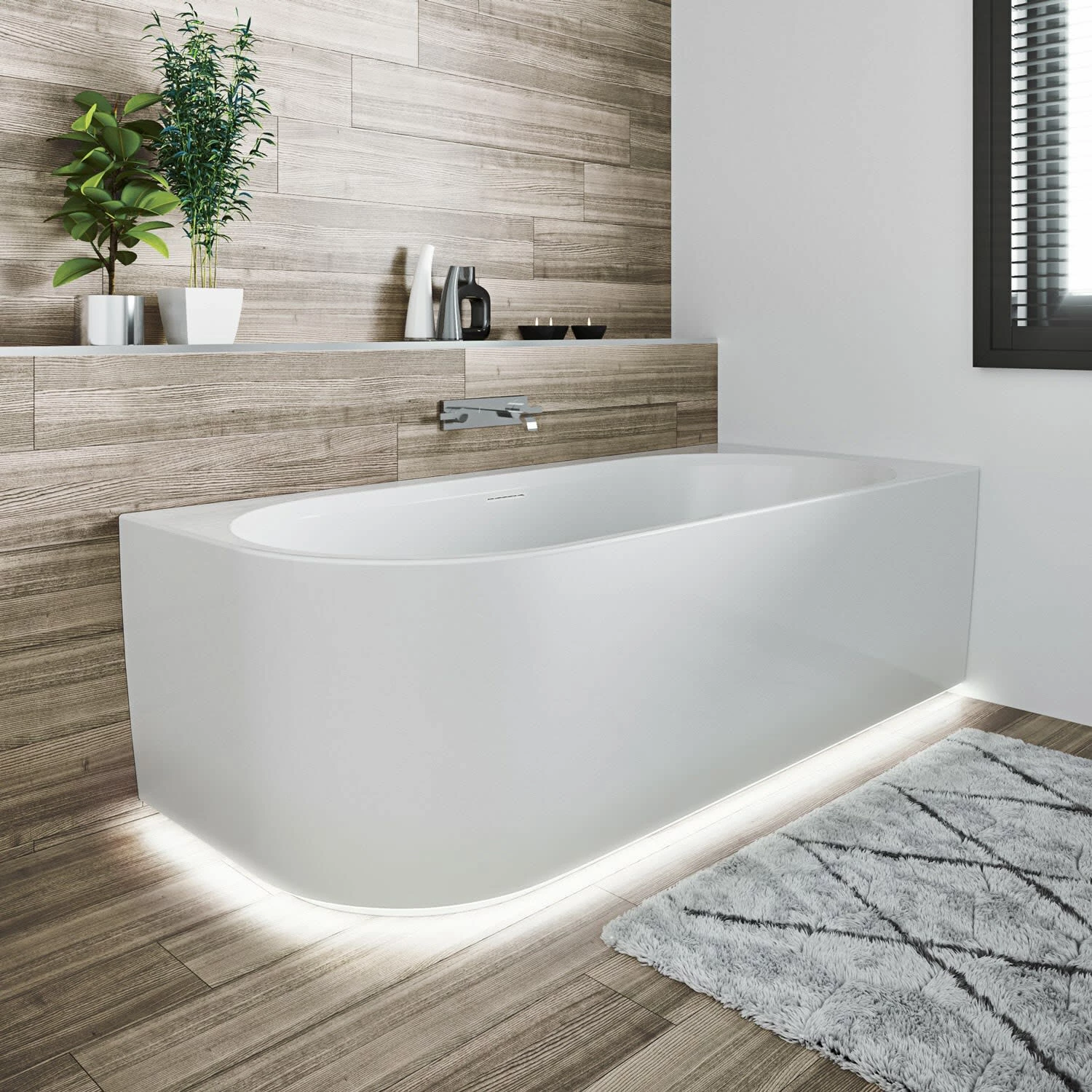 - incl. LED Beleuchtung entlang dem unteren Wannenrand unterhalb der Schürze, mit unsichtbarer Bedienung ON/OFF eingebaut im unteren, seitlichen Wannenrand