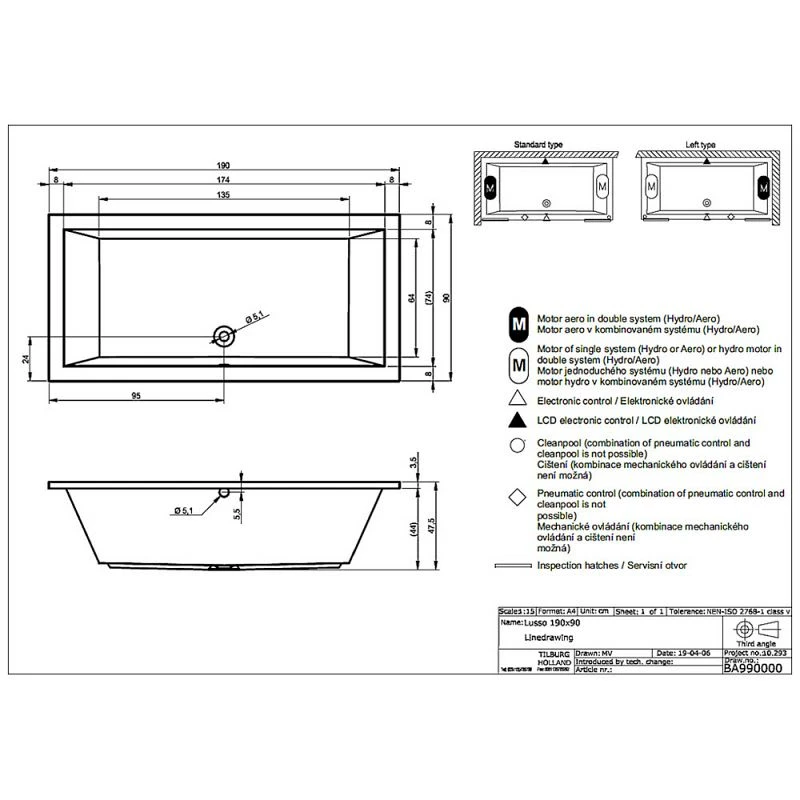 Riho Lusso Rechteck-Badewanne 190 x 90 cm