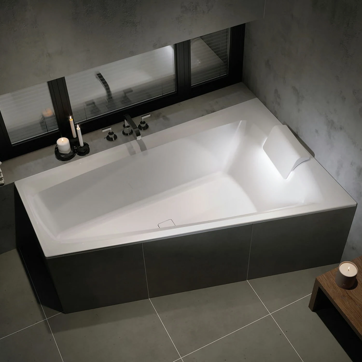 Riho Still Smart Raumspar-Badewanne 170 x 110 cm, links mit Riho-Fall Wanneneinlauf, LED-Beleuchtung und Kopfstütze