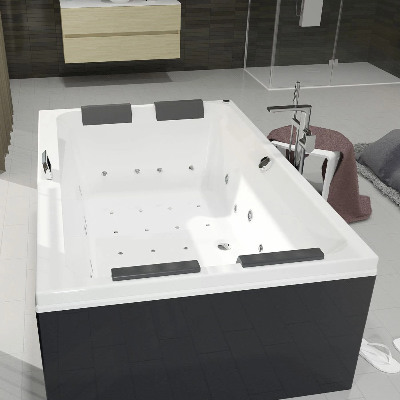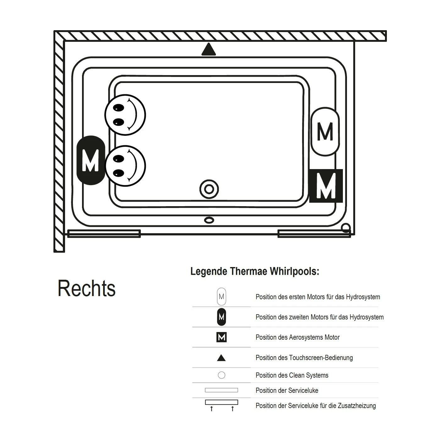 Riho Whirlpool Olivia rechts mit Farblichttherapie, Touchbedienung, Heizung und Kopfstützen schwarz
