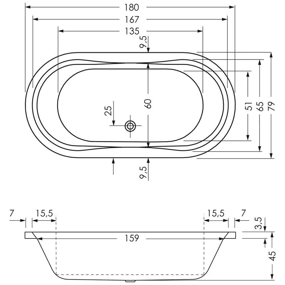 Oval-Badewannen