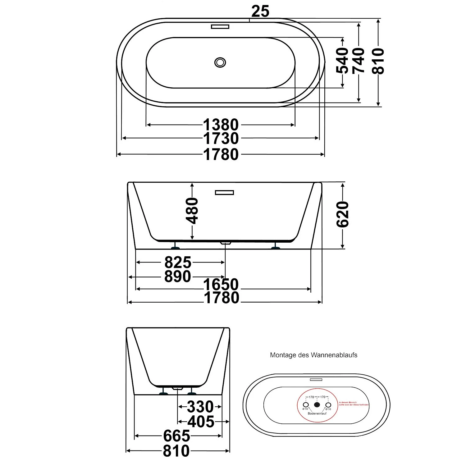 Alle freistehenden Badewannen werden handgefertigt. Dadurch kann es zu geringen Maßabweichungen bei der angegebenen Höhe kommen.
