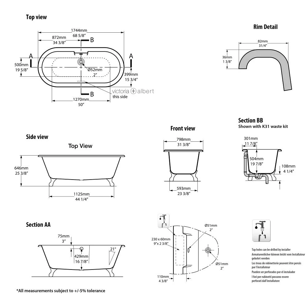 Victoria & Albert Cheshire freistehende Badewanne, Füße Nickel poliert